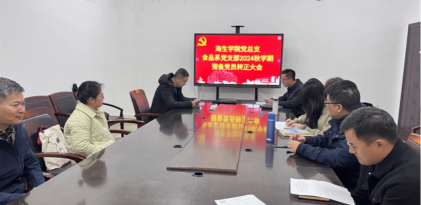 2024年11月27日,williamhill食品系党支部在公司409会议室召开预备党员转正支部大会,支部书记王笃军主持,支部9名党员出席。