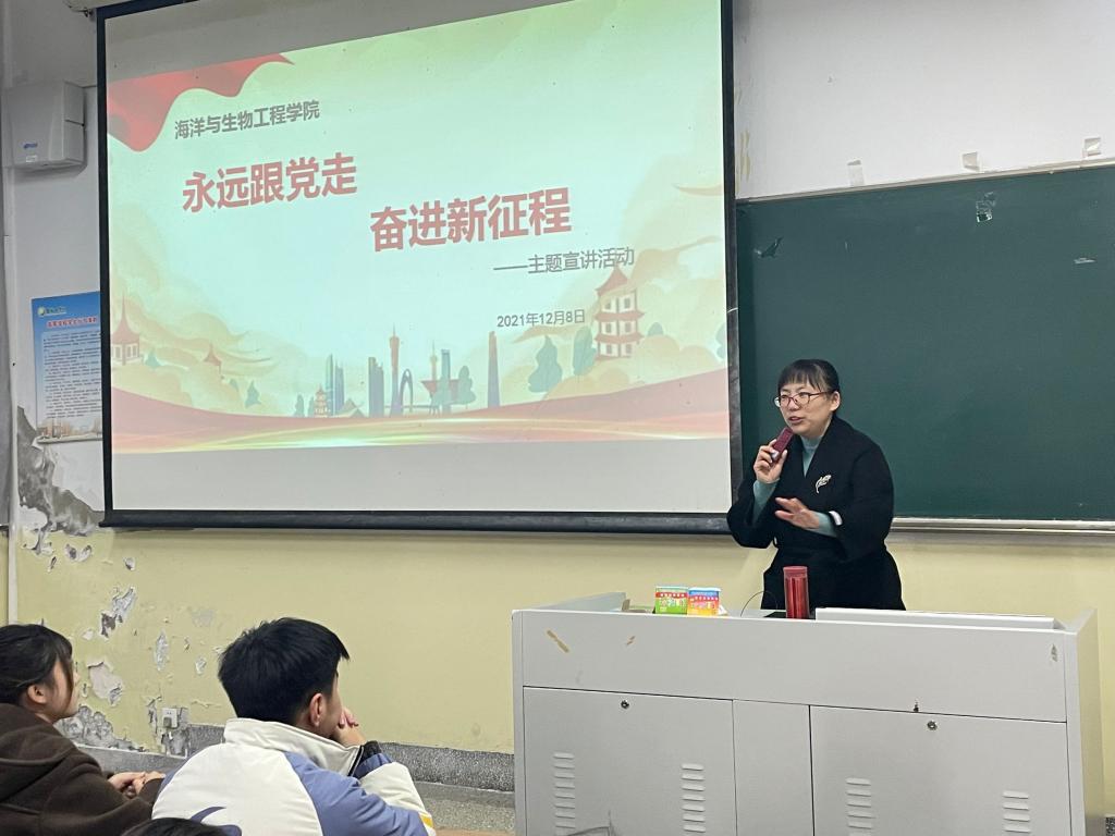 12月8日下午,在建军东路校区知行楼103,williamhill邀请了马克思主义公司副教授侯慧艳老师作“永远跟党走,奋进新征程”主题宣讲会,团委副书记王珂主持,员工会干部和“青马工程”学员到会听取了讲座。
