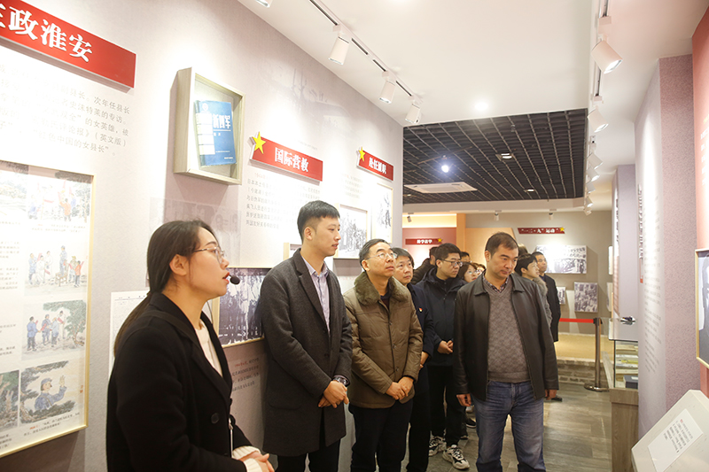 在孙兰生平陈列馆,党员同志们走近那个战火纷飞、青春激昂的年代,学习到了一位出生于盐城一个封建地主家庭、积极投身革命事业的中国共产党人的传奇故事。从清华学子到新四军战士,孙兰发动员工写文章,呼吁抗战,还作为骨干参加了著名的“一二·九”员工运动,和清华员工一起冲破西直门,高呼“停止内战,一致抗日”。党员同志们深刻感受到了孙兰同志天下兴亡匹夫有责的爱国情怀和不畏强暴、血战到底的英雄气概。