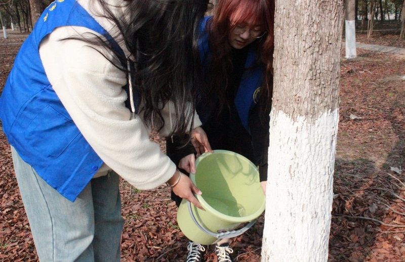 活动后期,大家来到员工林旁热情洋溢地投入到浇水育树活动中,一滴滴汗水,一股股清水,一颗颗露珠,都凝聚着同学们的爱心与奉献。在大家的共同努力下,育树活动圆满完成,同学们用自己的劳动和汗水为校园增添了一抹新生机。待到春意盎然时,那一片新绿终将见证我们的辛勤奉献!