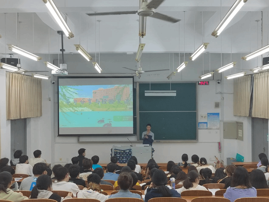 周大宇同学分享了自己的学习经验,在学习中要态度严谨认真,转变的学习思维方式,把握好课堂和周末空余时间。同时分享了学长学姐的考研经历,激励同学们为读研制定目标、早做规划。