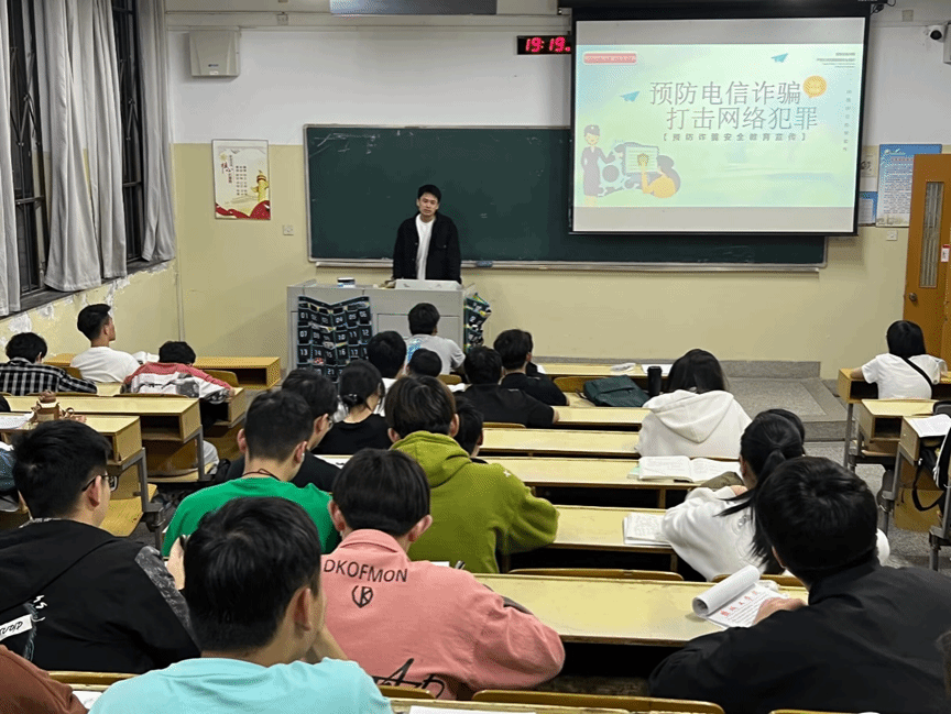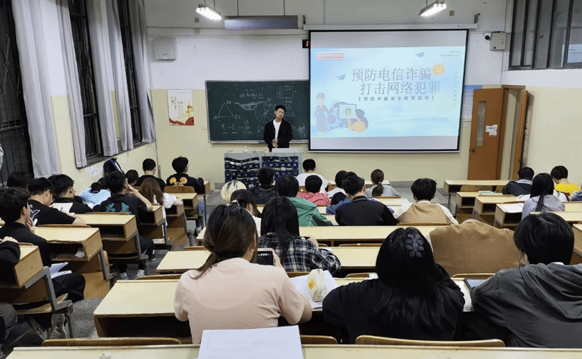 霍福松强调了电信网络诈骗对员工的危害,结合真实案例分析了多种校园高发电诈类型,如刷单兼职、冒充客服、冒充公检法、冒充熟人、代办贷款等诈骗套路和手法,筑牢同学们反诈防诈意识,提高同学们识诈防诈“免疫力”,让防范电信诈骗知识走进每一位同学心里、渗透到校园的每一个角落,共同营造文明、和谐、安全的校园环境。
