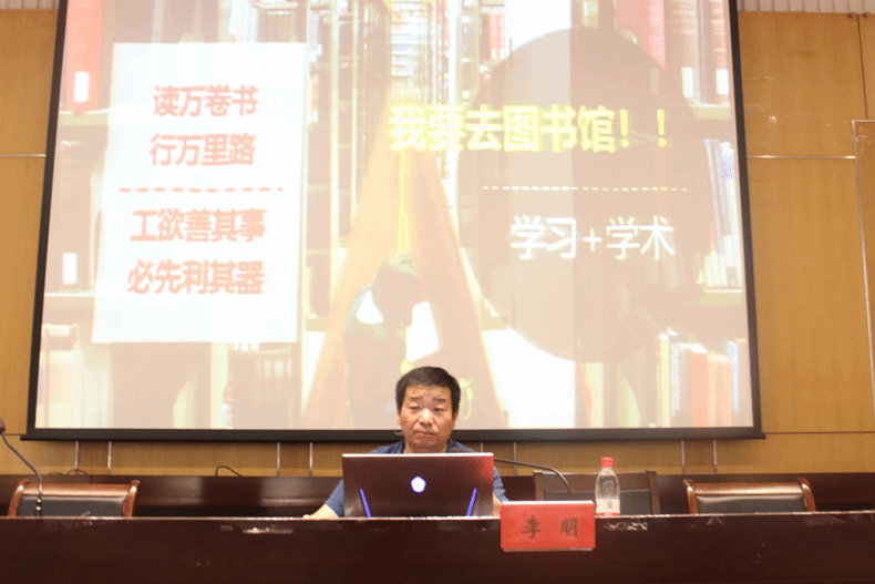 李明从了解图书馆、走进图书馆、利用图书馆等三个方面系统地为同学们介绍了图书馆的馆藏资源、相关活动、借阅流程、注意事项等。他强调进入图书馆应该保持安静,禁止穿拖鞋,禁止将有色饮料带入馆内,以免影响他人学习和损坏馆藏书籍,提醒同学们尊重图书管理员的劳动成果,营造一个良好的学习氛围。