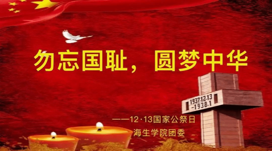 以国之名公祭,自强者自立。1937年12月13日,是每一个中国人都不能忘记的日子,忘记历史等于背叛过去。通过本次活动的开展,加强了同学心中的民族意识和爱国情怀,进一步深化了同学们心中的和平观念,树立起“勿忘国耻,圆梦中华”的理想抱负。