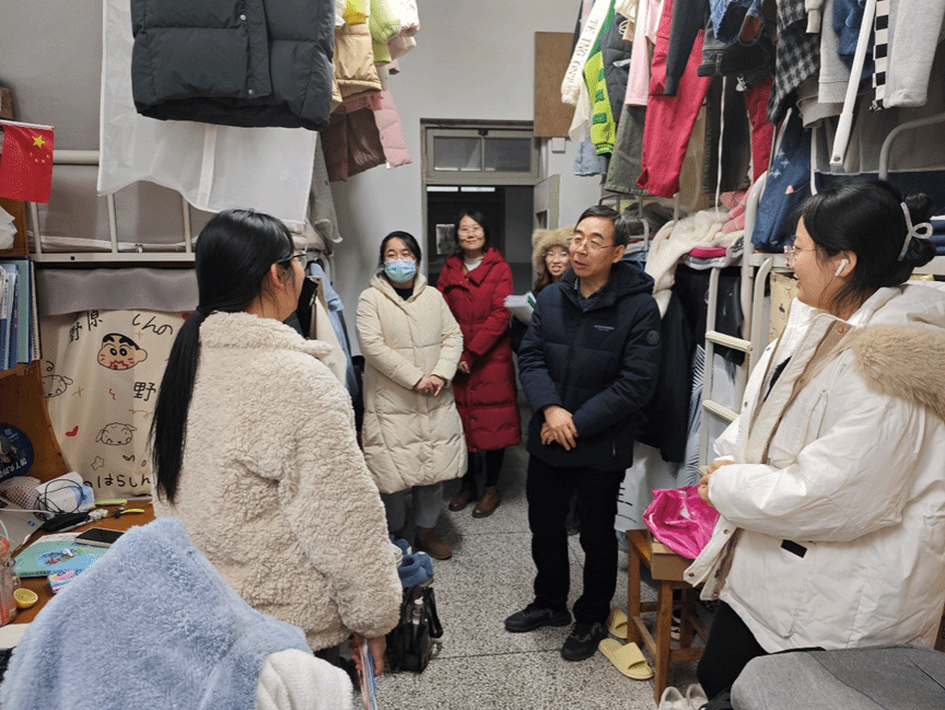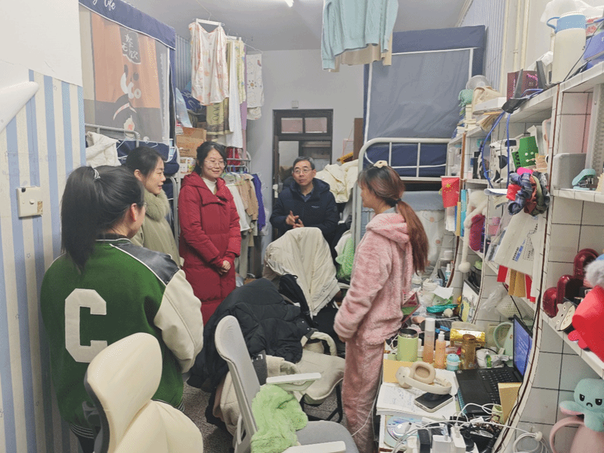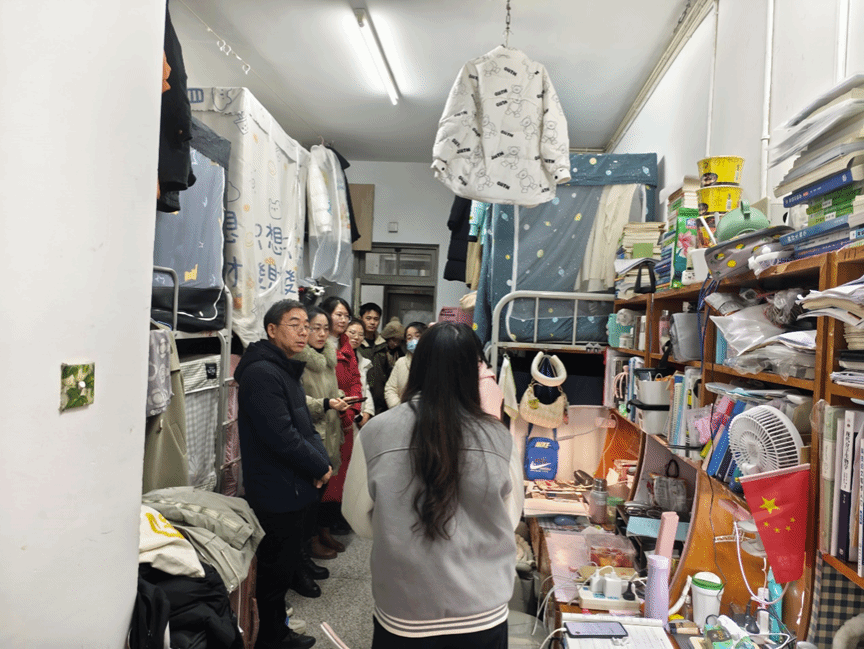 严守宿舍安全底线,共建平安寝室环境。老师们重点围绕员工宿舍卫生安全、有无大功率电器、排插使用、是否有烟头等方面开展检查。检查过程中,老师和同学们亲切交流,关心关爱每位同学的学习生活情况,嘱咐同学们要增强安全防范和卫生意识,合力营造更加安心的学习生活环境。