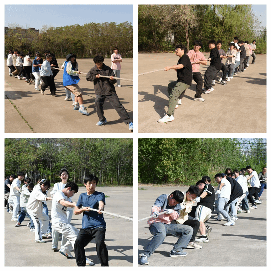 每班选手看着地上的拔河绳,个个摩拳擦掌,跃跃欲试。有的排兵布阵,有的更是“咬牙切齿”使出了全身吃奶的劲,在场外的观众的心高高悬挂,双手握拳,为心仪队伍加油喝彩。