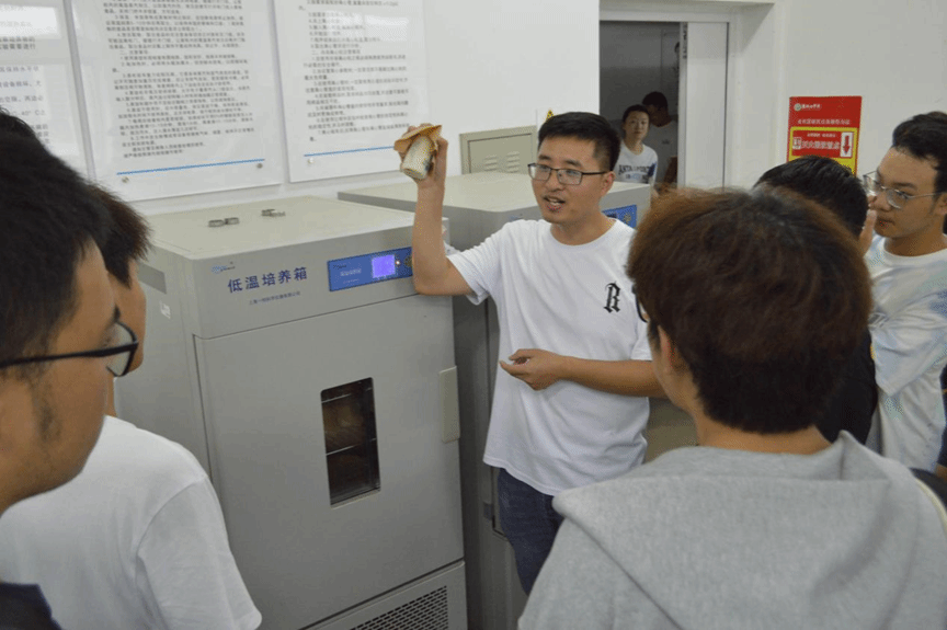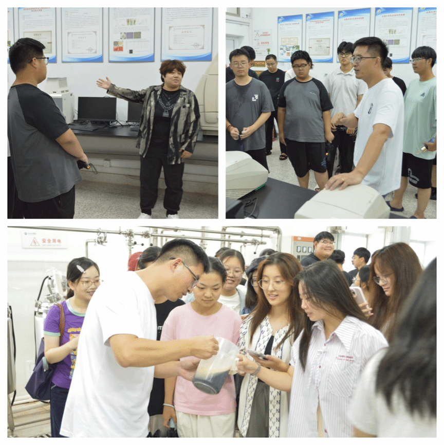 食品专业的教育活动在实验楼第五层开展,公司生物实验中心主任王笃军带领新生参观食品工艺学、发酵工艺学、啤酒中试实验室及大型仪器共享平台。在食品工艺学实验室,新生了解到果蔬、粮油、乳品等食品的加工实验流程;发酵工艺学实验室中,王笃军老师展示了自制酸奶;啤酒中试实验室里,他不仅讲解啤酒相关知识,还让新生品尝黄啤与黑啤,通过味觉体验深化认知。