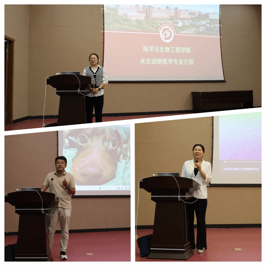 海洋专业的教育活动由教授乔帼,系主任隋延鸣、副主任聂庆主讲。乔帼教授围绕水生动物医学专业展开解读,指出该专业设立既是满足水产行业疫病防治的迫切需求,也是提升水产职业兽医师水平的关键,更是公司顺应江苏沿海大开发战略的举措。她介绍了专业在实践平台、学科融合、社会服务等方面的特色,说明新生可通过实验基地、国际合作、基层服务等途径学以致用。