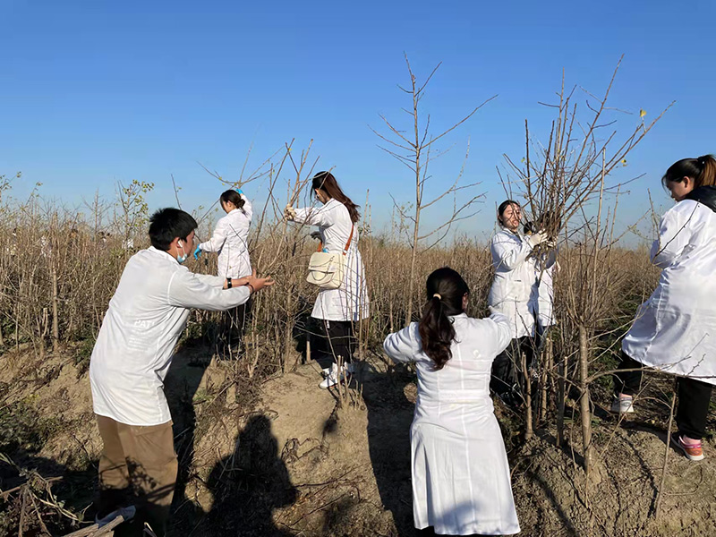 此次劳动的主要内容为叶用银杏抚育圃的银杏剪枝工作,在劳动开始前,李洪山教授对银杏剪枝的原理、操作方法、注意事项等作了详细讲解。伴着午后的暖阳,同学们分组开始了下午的的劳动。大家在工人师傅的指导下,明白了技巧,很快找到了修剪的正确位置,知道了如何下剪、如何用力。一招一式,干劲儿十足,充满激情。
