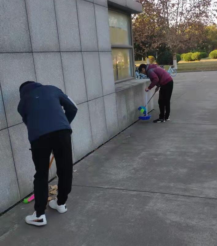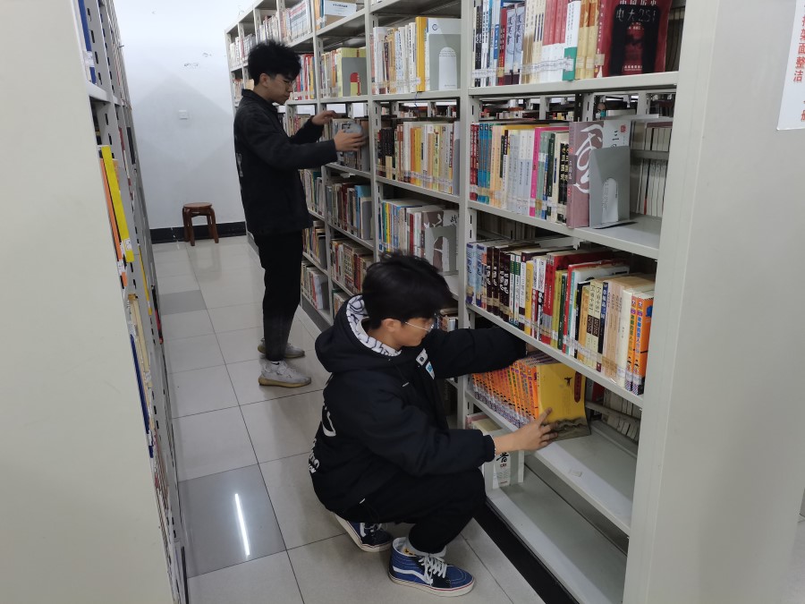 这是一堂与众不同的劳动,北校区馆内,三至五人一组,相互团结协作,男同学负责高层书架图书整理,女同学负责低层图书整理和清洁,整个劳动过程中井然有序;馆外的同学则拿起了扫帚对图书馆周围的落叶以及隐蔽处的生活垃圾进行收集,虽然天气很冷,但是大家工作热情都很高。