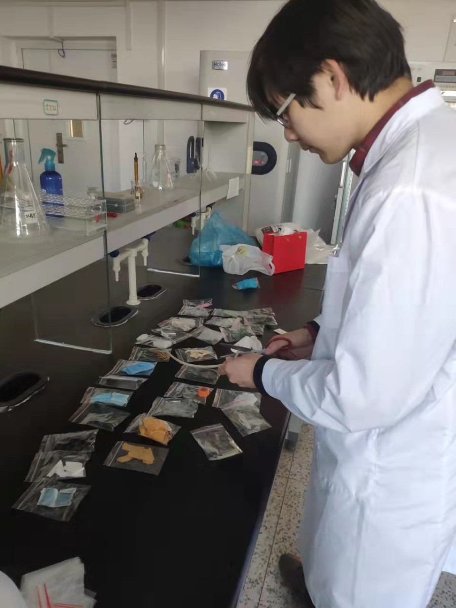 还有同学还将收集的垃圾分类,并取样带到了实验室,在老师的指导下,进行了傅里叶红外光谱分析。结果同学们发现,一次性口罩主要成分是涤纶(聚酯纤维),一次性快餐盒主要成分是聚丙烯,一次性勺子是聚氯乙烯,饮料瓶是聚对苯二甲酸乙二醇酯。隋延鸣博士说:“这些垃圾基本都是塑化品,极难降解,对环境造成极坏影响。希望同学们尽量使用环保材料制成的口罩,少使用一次性餐具,从我做起,养成文明行为,创建文明校园。”