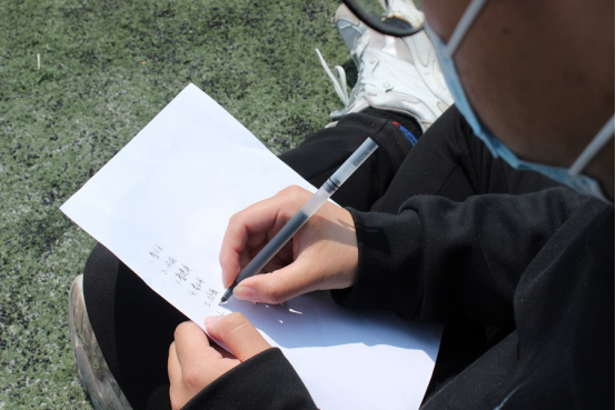 同学们在操场上站成一排,每经历一个重要瞬间就向前走一步,一直走到象征着死亡的终点线。活动后,大家回到教室开展“以爱之名、心怀感恩”的主题分享。B海洋202的陈诗豪同学想起了拉扯自己长大的爷爷。他说:“时光一直在流逝,我能够在今天在高考中挺过,从当选为员工干部,从一个人的做事态度、为人品格,一步一步做成为实现的志向都离不开我的爷爷。”爷爷参与了他的全部童年,带给他儿童时期的许多快乐。时光荏苒,思念犹深。B生物201的许文艳同学说:“或许死后会化作天空的云、山间的风,相爱的人们依然会互相守护。生命转瞬即逝,希望能有多点时间去陪伴亲人。”