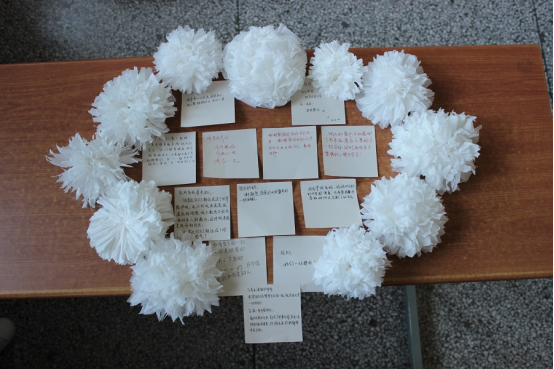 春意暖然,但思人情更切。清明节气,气清景明,轻饮一杯,盛满对亲人的思念。B食品211的岳婷同学在听到各位同学谈起思念逝去的亲人时,眼里尽是担忧说:“我的亲人如果不在了,我会是什么样子的?”B食品202的屈鑫月同学说:“ 前有先辈以命抗战,后有小生不畏生死,我们严防死守,在基层岗位上守护着我们这片和平的天地,我觉得这便是对于逝去的先辈们最大的慰藉,他们拼命守护的和平我们来继续守护。”在分享了自己家乡不用的祭祀方式后,同学们用自制小百花祭奠逝去的亲人和英勇牺牲的先烈。
