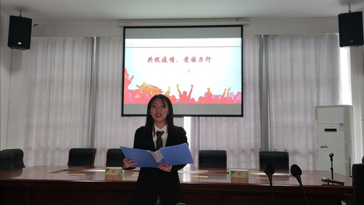 “青年人唯有将抗疫精神融入到基层中,把个人理想融入到国家和民族的事业中,全力以赴……”B生物211的马妮同学演讲到铿锵有力、抑扬顿挫,将现场的所有人情绪带入了进去。