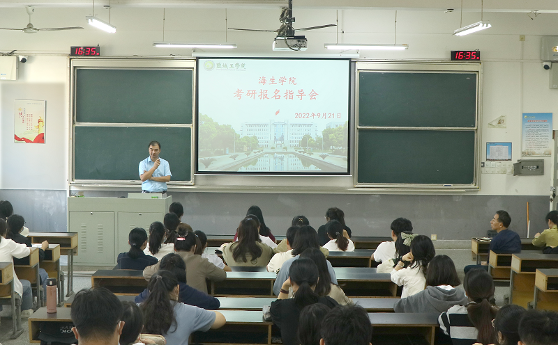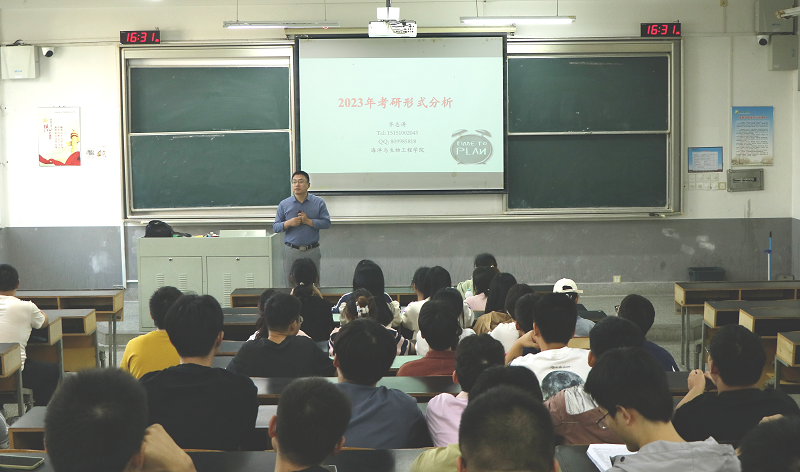 会上,齐志涛详细解读了当前的研究生招生形势和相关政策,并就专硕扩招、保研计划增加等政策变化提出针对性的报考指导。他强调,研究生考试的报考和准备首先要树立正确的考研观念,要正确认识读研究生的目的,不要随波逐流。针对考研志愿的填报,他提醒同学们要根据自己复习的实际情况选择公司,避免同校、同专业“撞车”,优先选择自己擅长的考试科目,增强考试信心,提高上岸几率。
