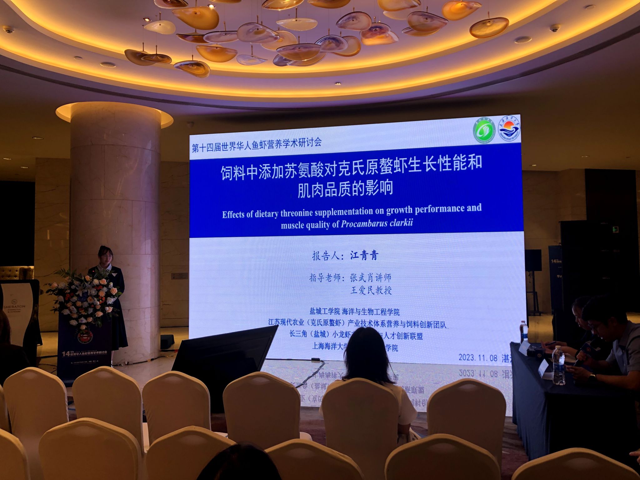 2023年11月6日至10日,第十四届世界华人鱼虾营养学术研讨会(简称“世华会”)在广东湛江召开,公司williamhill水产动物营养与饲料研究所田红艳副教授,张武肖、夏斯蕾、潘明珠三位博士和团队研究生江青青、胡长东和李敖等参加交流研讨。夏斯蕾在大会上作学术报告。