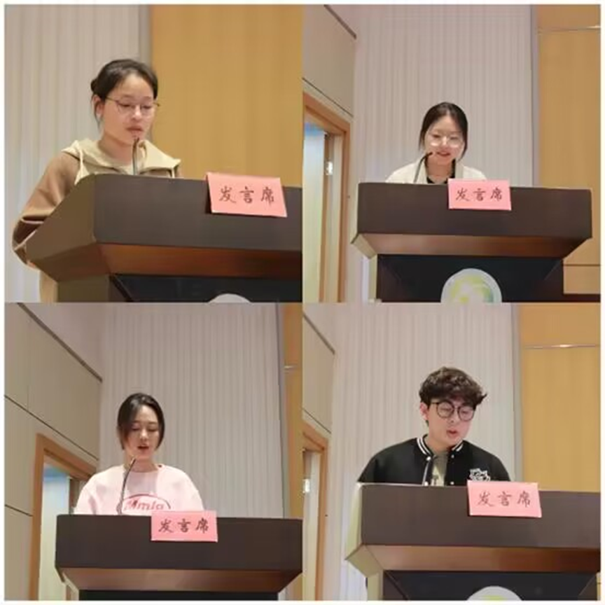 2019级考取苏州大学、华东理工大学、广西民族大学研究生的员工代表葛奕蕙、朱政和陈丽同学作经验交流发言。他们从院校与专业选择、学习计划安排、最大限度利用资源、考研调剂把握细节等方面,分享自己成功上岸的经验。他们认为,考研是场持久战,要确立目标、下定决心,找到适合自己的学习节奏,一定要坚持到最后,保持良好心态。海洋20级考研同学代表吉萌作表态发言,她汇报了自己的考研目标、考研计划、考研进度,表示要向学长学姐学习,努力拼搏,尽自己的努力为老员工涯画上圆满句号。