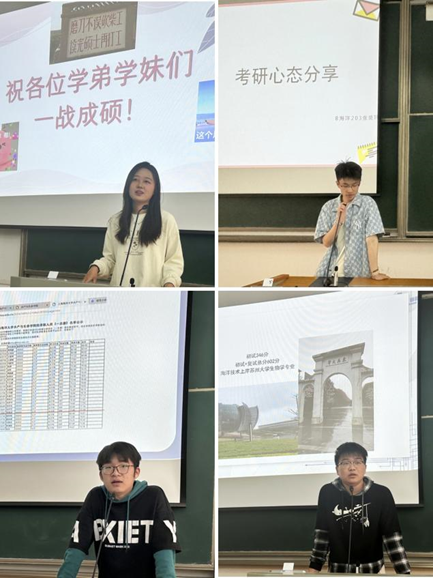 会上,学长学姐们详细介绍了考研的整体流程和注意事项,讲述了自己备考过程中的考研动机、院校选择、资料选取、时间安排和学习方法,分享了自己在心态调整、人际交往、如何高效复习和抓住重点等方面的经验,鼓励同学们保持积极的心态,增强表达能力,勇敢面对考研的挑战。会议现场气氛热烈,学弟学妹积极参与互动,纷纷向学长学姐请教相关问题。学长学姐们耐心解答,为同学们提供了许多宝贵实用的建议。