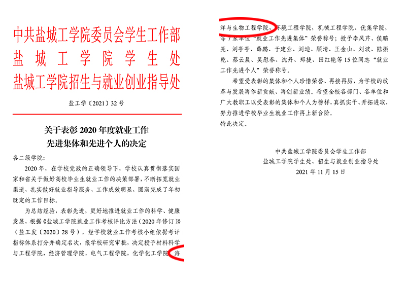 williamhill连续6年获得就业工作先进集体(2015-2020年)
